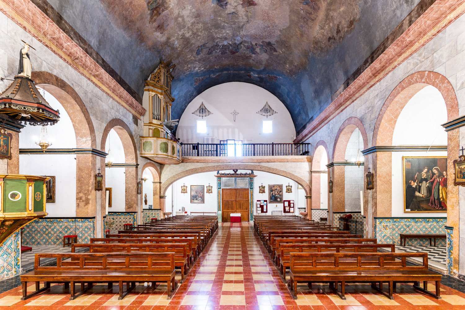 Su estilo es barroco y a pesar de las modificaciones que ha sufrido, aún conserva la estructura arquitectónica original. El edificio tiene una nave con bóveda a medio cañón que fue decorada con frescos por el mallorquín Vicente Matas el año 1884. De las once capillas que tiene la iglesia destacan dos; la dedicada a la Virgen del Rosario que entrando en el templo es la primera a mano izquierda, la cual se pudo bendecir en el año 1596 y luego, por la última tambien a la izquierda se pasa al Oratorio dedicado al Santísimo Cristo del Cementerio.